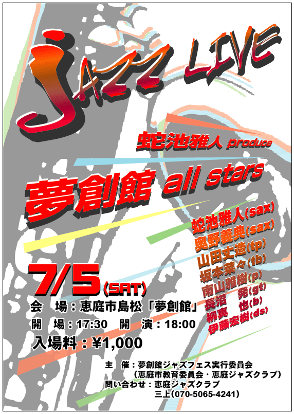 問合先 恵庭ジャズクラブ コモダ 090-2877-0808